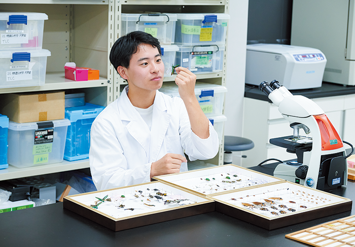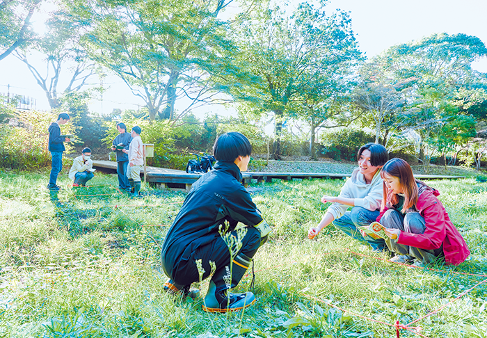 生物多様性 フィールドワーク演習 学べる内容 都市公園や箱根などの学外で、生態系や生物多様性を調査し、環境保全について実践的に学びます。 身につく力 野生動植物の調査方法や、身の安全を確保したフィールドワークを実践できる技術や知識など、多様な能力が身につきます。