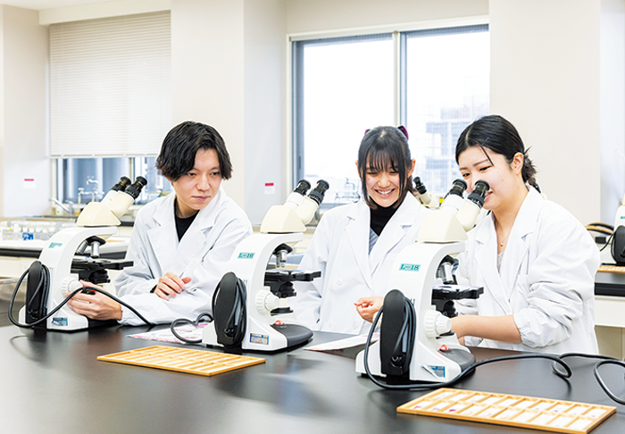 組織学・同実習 学べる内容 体の中にある組織・細胞の役割や形態的な特徴を学ぶことができます。また、顕微鏡を用いた標本観察の技術を学習できます。 身につく力 正常な組織・細胞について学習することで、病気によって生じる変化を理解する力が身につき、病理検査を学ぶための基礎知識を修得できます