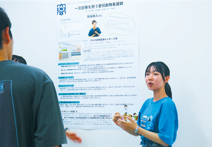 - 先輩や現場で働く愛玩動物看護師へのインタビュー・ポスター発表を通して、役割・倫理・仕事の魅力、進路情報の集め方まで、楽しく学びます。