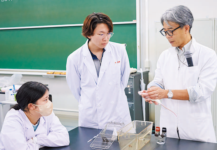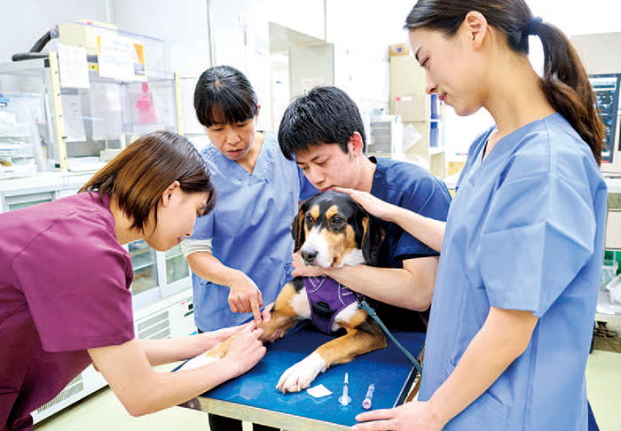 基礎教育系科目や基礎動物学科目をもとに、動物の適正飼養および看護に関する知識と技術、倫理観を習得します。履修した内容をもとに、4年次には動物病院で実習を行い、国家試験対策に取り組みます。