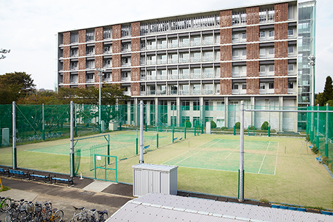 硬式庭球部を中心としたクラブ活動などで使用できるテニスコートで、オム二コート2面が設置されています。