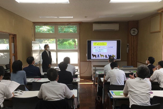 2022年9月12日14時~16時、川上学長、植竹獣医学部長、伊藤生命・環境科学部長、村上学長補佐、江口センター長が麻布大学フィールドワークセンターにて、島根県高校校長会研修で本学の紹介を行いました。